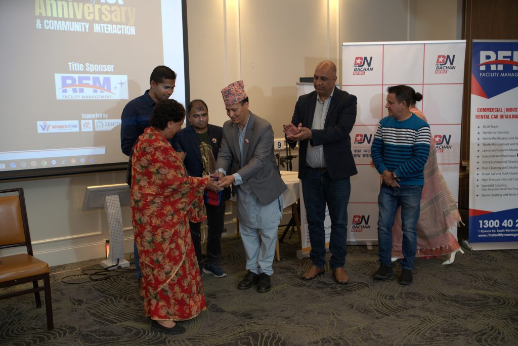 कार्यक्रममा अस्ट्रेलियामा स्थायी बसोबास गर्ने पहिलो नेपालीका रुपमा चिनिएका नारायण प्रधान, नेपाल अस्ट्रेलियन डेमोक्रयाटिक फोरमका पुर्व अध्यक्ष अजय सिवाकोटी, सुरक्षा थापा रायमाझीलाई ,एन्टाका पुर्व अध्यक्ष सुवांश साह , बहुसांस्कृतीक समाज समन्वय अधिकृत मुन लुओ र नेपाली क्रिकेट प्रशिक्षक जगत टमाटालाई सम्मान गरिएको थियो । राजदुत चित्रलेखा यादवले सम्मान प्रत्र प्रदान गरेकी थिइन ।