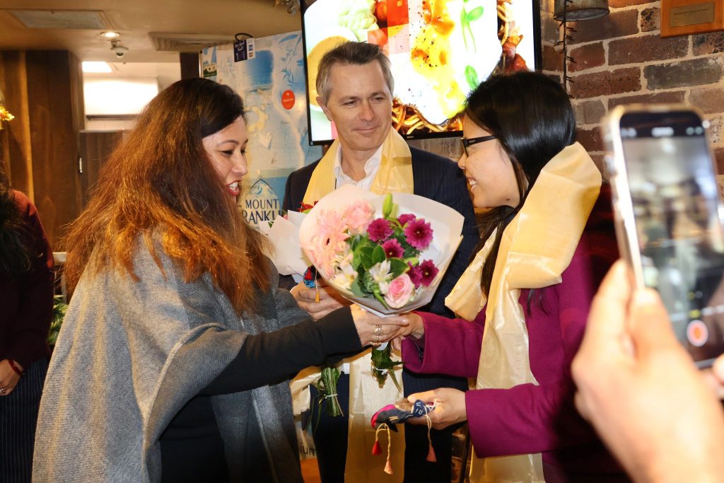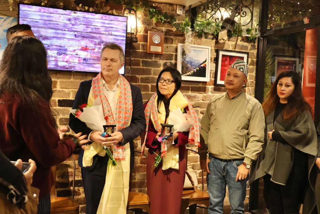 कार्यक्रममा मन्त्री क्लेयर र रिड क्षेत्रकी सांसद सैली सितोलाई आयोजकको तर्फबाट सम्बन्ध रेस्टुरेन्टकी सञ्चालिका मीरा गुरुङ र व्यवसायी जितेन्द्र श्रेष्ठले मायाको चिनो प्रदान गरे ।