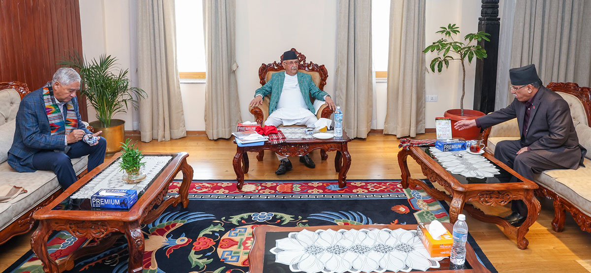 प्रधानमन्त्री एवं नेकपा एमालेका अध्यक्ष केपी शर्मा ओलीको आह्वानमा नेपाली कांग्रेस र नेकपा माओवादी केन्द्रका शीर्ष नेताहरूसहितको बैठक आयोजना गरिएको हो ।
