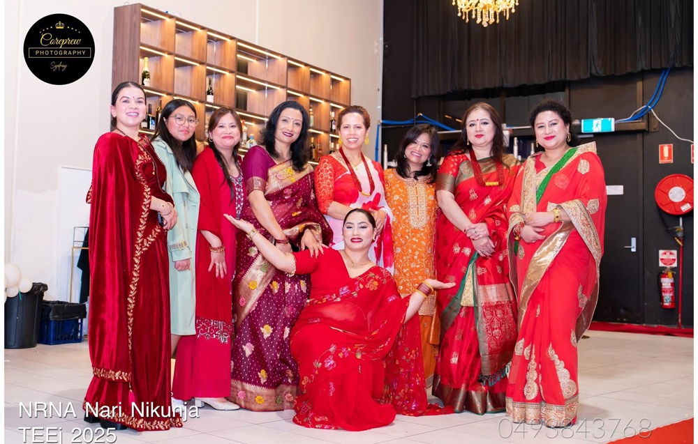 सिड्नी (अष्ट्रेलिया) । नारी निकुञ्ज अष्ट्रेलियाले नेपाली हिन्दु नारीहरुको महान पर्व हरितालिका तीजको अवसरमा आइतबार विशेष कार्यक्रमको आयोजना गरी मनाएको छ । एनआरएनए महिला मञ्ज नारी निकुञ्जले आयोजना गरेको कार्यक्रमलाई नारी निकुन्जको एनएसडब्लु संयोजक सबला बस्नेतले संयोजकत्व गरेकी थिइन् ।