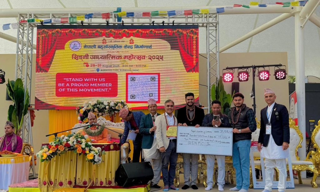 सिड्नी (अष्ट्रेलिया) । गत शुक्रबारदेखि सुरु भएको सिड्नी आध्यात्मिक महोत्सव २०२५ आइतबार सम्पन्न भएको छ । नेपाली समुदायको साझा सपना, नेपाली बहुसांस्कृतिक तथा सामुदायिक केन्द्र (GSNMC) निर्माण गर्ने उद्देश्यसहित सिड्नीमा आयोजना गरिएको तीन दिने सिड्नी आध्यात्मिक महोत्सव आइतबार साँझ सम्पन्न भएको हो ।