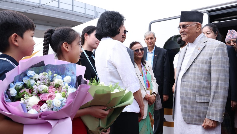 काठमाडौँ । चीनको थियानजिन सहरमा आयोजित शांघाई सहयोग संगठन (एससीओ) प्लसको शिखर सम्मेलन सकिएसँगै प्रधानमन्त्री केपी शर्मा ओली मङ्गलबार बेइजिङ पुगेका छन् । उनी थियाजिनको कार्यक्रम सकाएर रेलमार्गबाट बेइजिङ पुगेका प्रधानमन्त्रीको सचिवालयले जानकारी दिएको छ ।