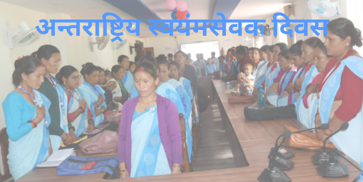 काठमाडौं । आज अन्तर्राष्ट्रिय स्वयंसेवक दिवस संयुक्त राष्ट्रसंघको आह्वानमा सबै सदस्यराष्ट्रमा विभिन्न कार्यक्रम गरि मनाइँदैछ ।