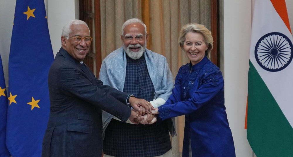 युरोपेली आयोगकी अध्यक्ष उर्सुला भोन डेर लेयन र युरोपेली परिषद्का अध्यक्ष एन्टोनियो कोस्टाले मङ्गलबार बिहान भारतका प्रधानमन्त्री नरेन्द्र मोदीसँग भेटवार्ता गरेका हुन् । प्रधानमन्त्री मोदीले सोमबार सम्पन्न भएको यो सम्झौताले विश्वका दुई प्रमुख अर्थतन्त्र—संयुक्त राज्य अमेरिका र चीन—बाट सिर्जित चुनौतीहरूको सामना गर्न भारत र इयु दुवैलाई सहयोग पुग्ने विश्वास व्यक्त गरेका छन् ।