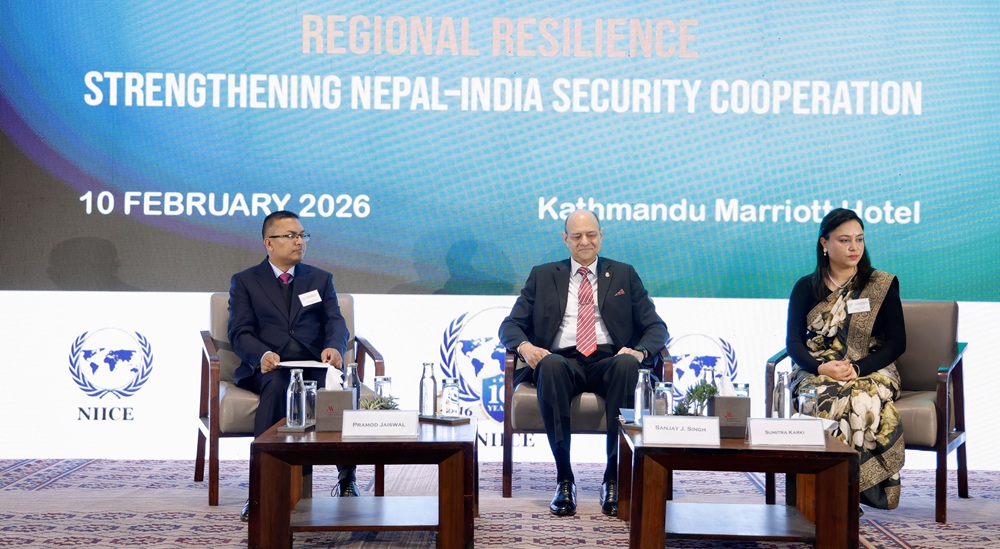 नेपाल इन्स्टिच्युट फर इन्टरनेसनल कोअपरेसन एन्ड इन्गेजमेन्ट (नाइस) ले मङ्गलबार यहाँ आयोजना गरेको प्रबुद्ध व्यक्तिहरू सम्मिलित ‘नेपाल–भारत सुरक्षा सहकार्य सुदृढीकरण’ विषयक कार्यक्रममा दुई देशका सुरक्षा विज्ञ, विश्लेषक तथा नीतिगत क्षेत्रका सरोकारवालाले बदलिँदो क्षेत्रीय चुनौती र अवसरबारे छलफल गर्दै यस्तो आवश्यकता औंल्याएका हुन् । सुरक्षा सहकार्यलाई द्विपक्षीय सम्बन्धको मेरुदण्ड मान्दै भारतको आर्थिक वृद्धिबाट नेपालले लाभ लिनुपर्ने, दुवै देशले ऊर्जा व्यापार र पारवहन विस्तारमा जोड दिनुपर्ने तथा राजनीतिक स्थायित्व, संस्थागत सुदृढीकरण र व्यवहारिक संलग्नतामार्फत दुवै देशबीच दिगो एवम् परस्पर लाभ हुने विषयमा सहकार्य गरिनुपर्ने उनीहरूको निष्कर्ष छ
