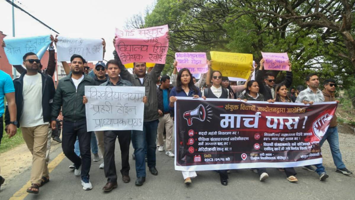 त्रिभुवन विश्व विद्यालयमा संयुक्त विद्यार्थी संंगठनले आज विभिन्न नारा सहित प्रर्दशन गरेका छन् ।